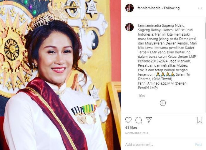 Dalam unggahan lainnya, Fanni Aminadia juga mengakui menjadi salah satu dewan pendiri Laskar Merah Putih (LMP).